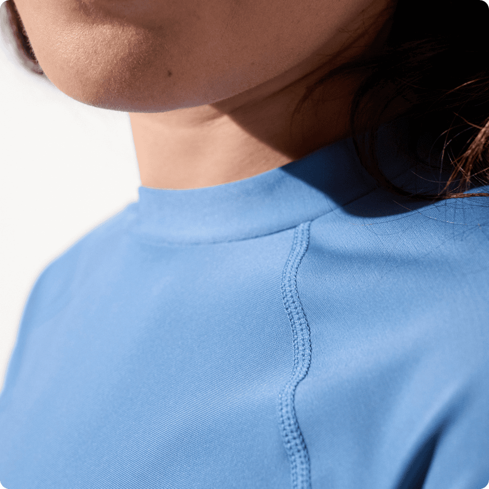 Questa maglietta da bagno anti-UV per donna ti accompagnerà durante il bagno e tutte le altre attività acquatiche (paddle, vela, snorkeling...). Certificata UPF 50+ (certificazione massimale in Europa), proteggerà la parte superiore del corpo e le spalle contro i raggi solari nocivi sia dentro che fuori dall'acqua.
